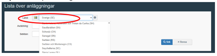 1. Gå till sökfunktionen: Lista över anläggningar